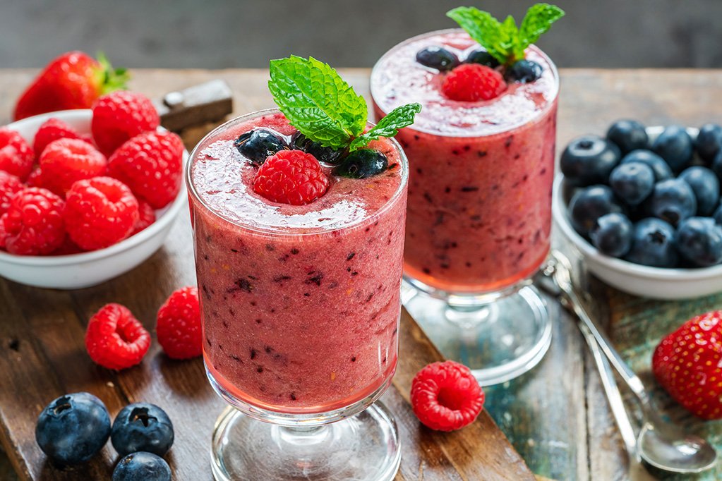 ½ xícara de chá de frutas vermelhas (morangos, mirtilos ou framboesas)