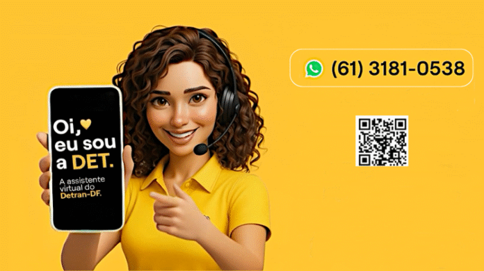O nome “DET” é uma abreviação de Detran-DF e reforça a identidade da assistente com a instituição que representa. Neste primeiro momento, a assistente virtual estará disponível no Portal de Serviços do Detran-DF, no canto inferior direito da tela, e também pelo WhatsApp, por meio do número (61) 3181-0538.