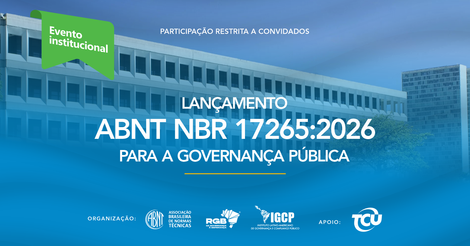 A programação completa do evento e as inscrições estão disponíveis no link https://www.sympla.com.br/evento/lancamento-da-abnt-nbr-17265-2026-para-a-governanca-publica/3323292. As vagas são limitadas.